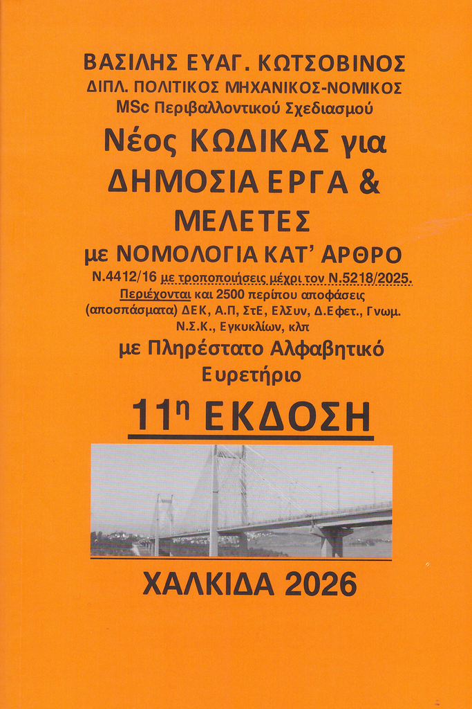Νέος Κώδικας για Δημόσια Έργα & Μελέτες με Νομολογία κατ’ Άρθρο, 11η Έκδοση